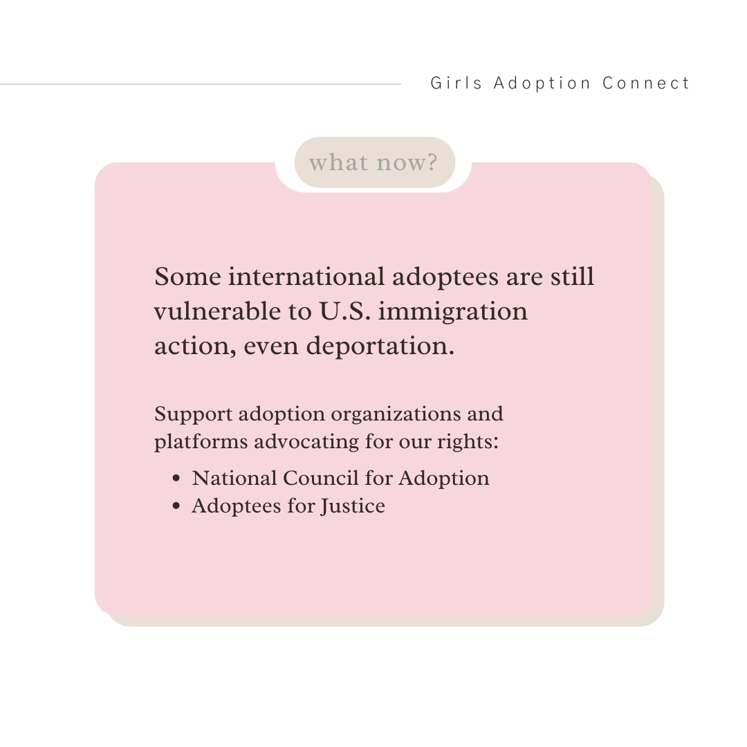What affects some adoptees affects our community. As we look toward the new year, we must continue to advocate for international adoptee rights.