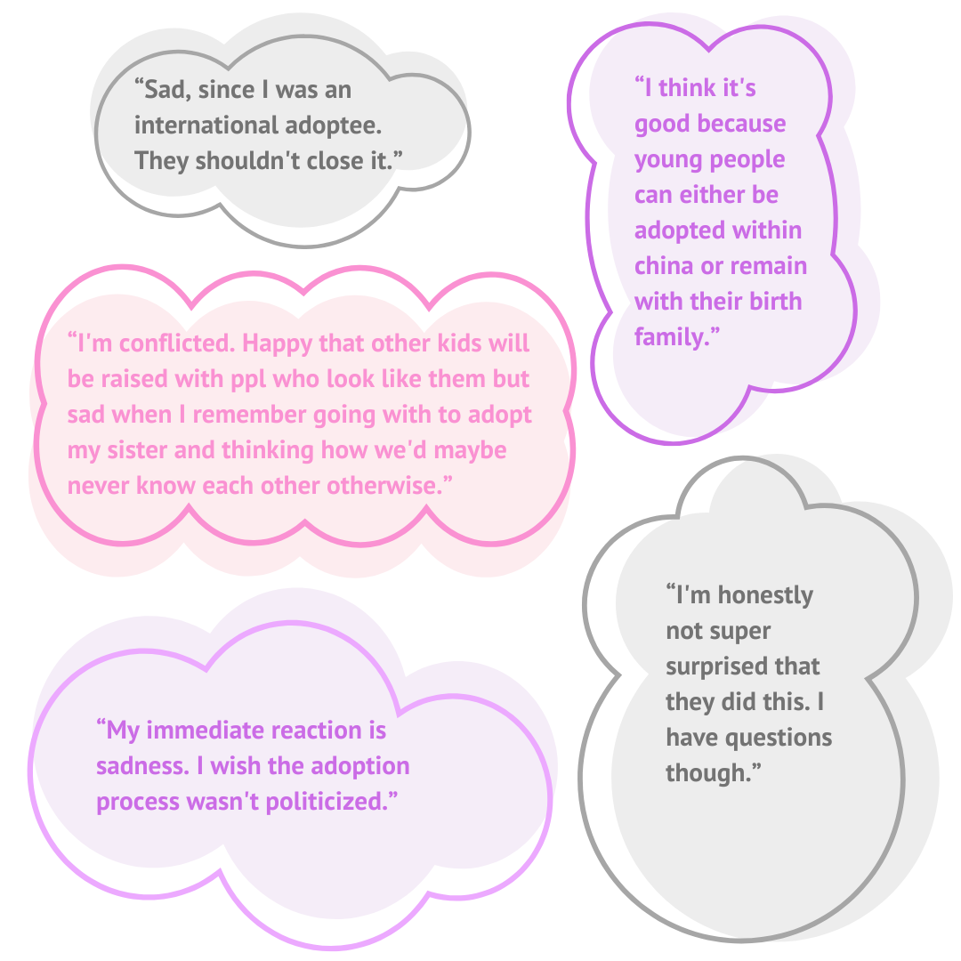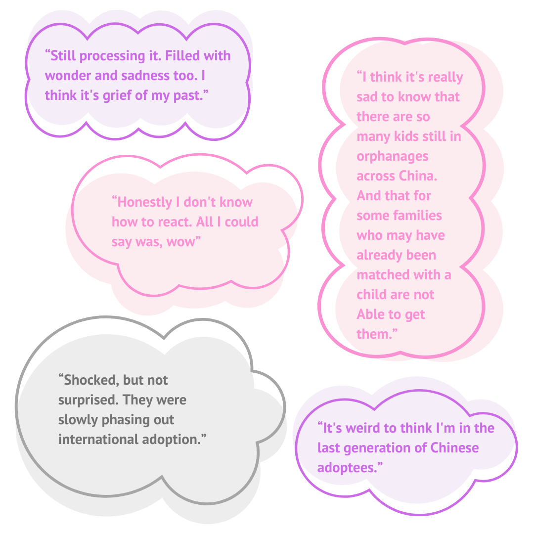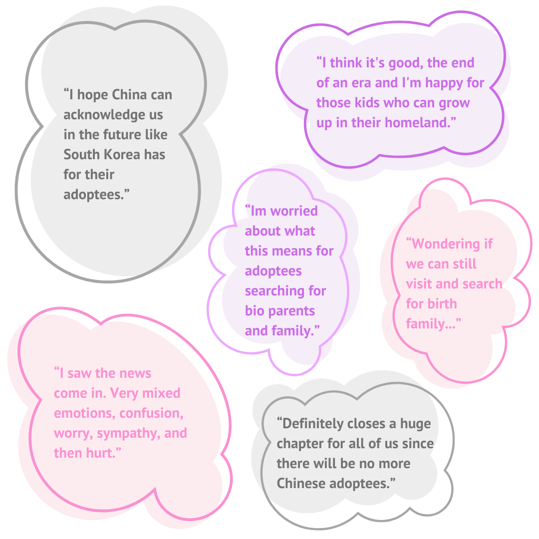 - “Definitely closes a huge chapter for all of us since there will be no more Chinese adoptees.”