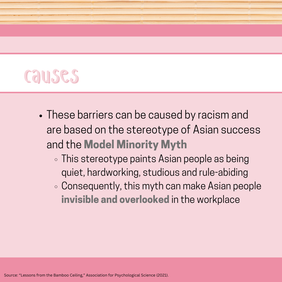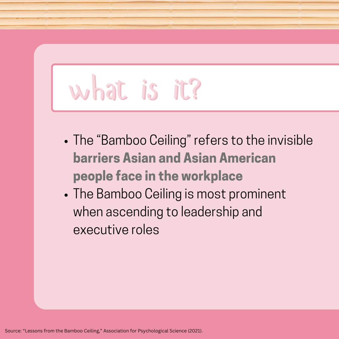 The “Bamboo Ceiling” refers to the invisible barriers Asian and Asian American people face in the workplace.