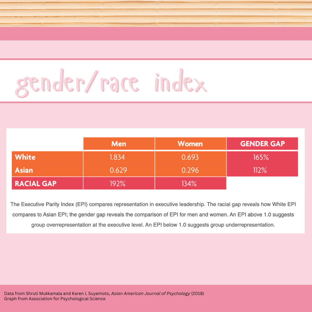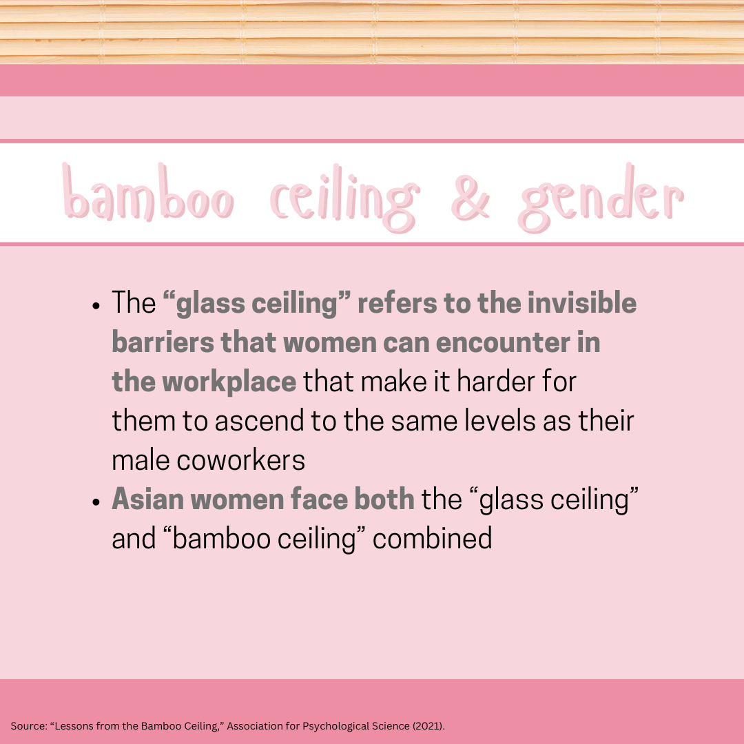 Asian women often experience both the glass ceiling and the bamboo ceiling simultaneously.
