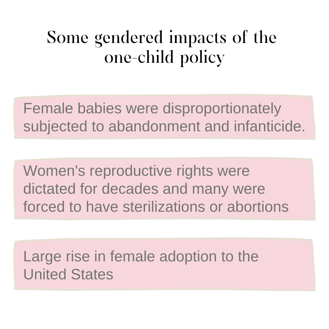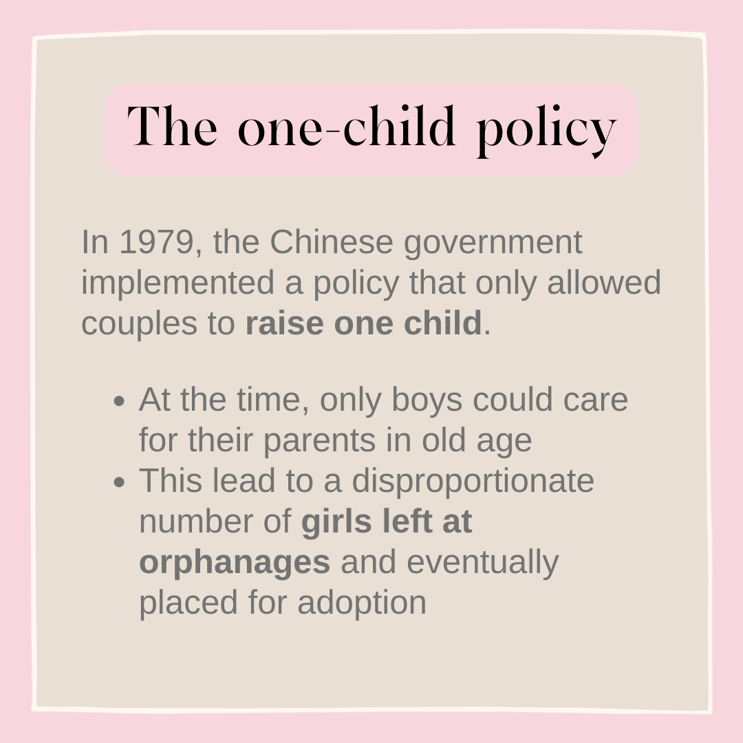 This led to a disproportionate number of girls being left at orphanages and eventually placed for adoption.