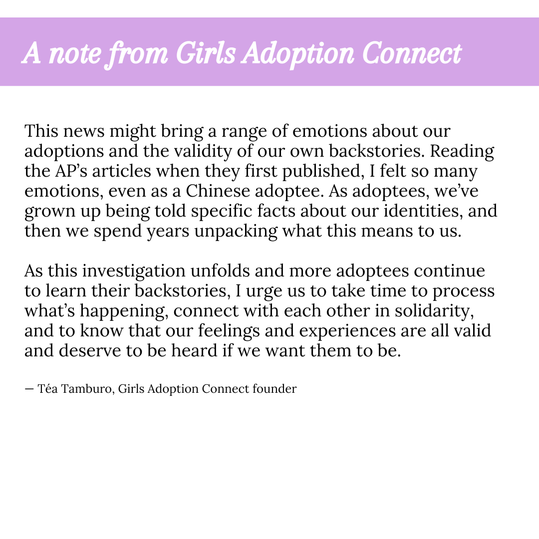 This news may bring up a wide range of emotions about our adoptions and the validity of our own stories. When I first read the Associated Press investigation, I felt many emotions — even as a Chinese adoptee.