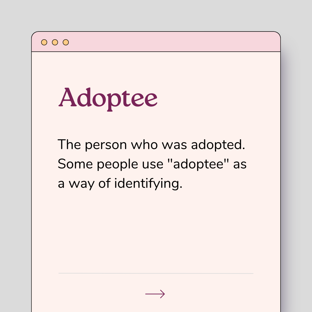 The person who was adopted. Some people use “adoptee” as a way of identifying.