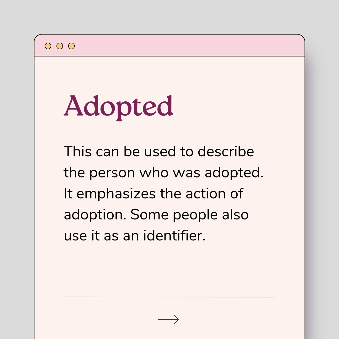 This can be used to describe the person who was adopted. It emphasizes the action of adoption. Some people also use it as an identifier.