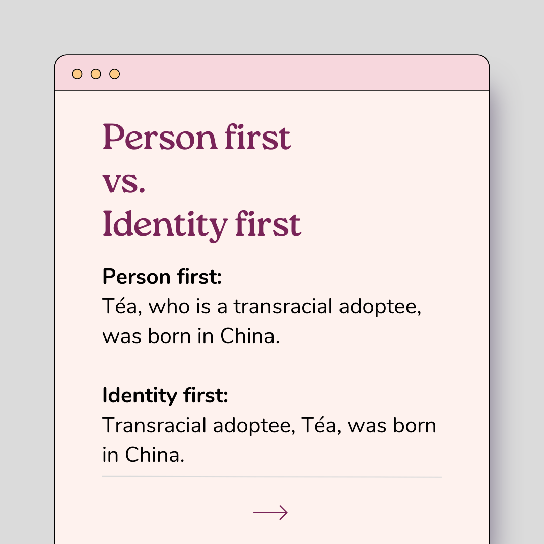 Person-first: Téa, who is a transracial adoptee, was born in China.