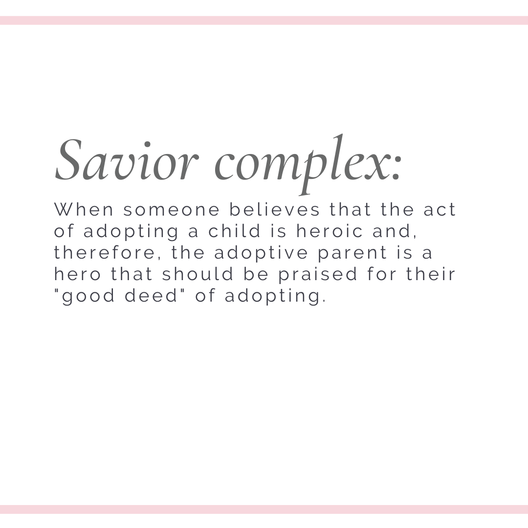 When someone believes that the act of adopting a child is heroic and, therefore, the adoptive parent is a hero who should be praised for their “good deed” of adopting. -