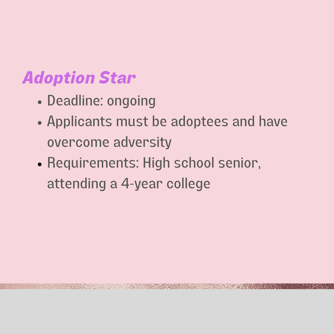 Applicants must be adoptees and have overcome adversity.