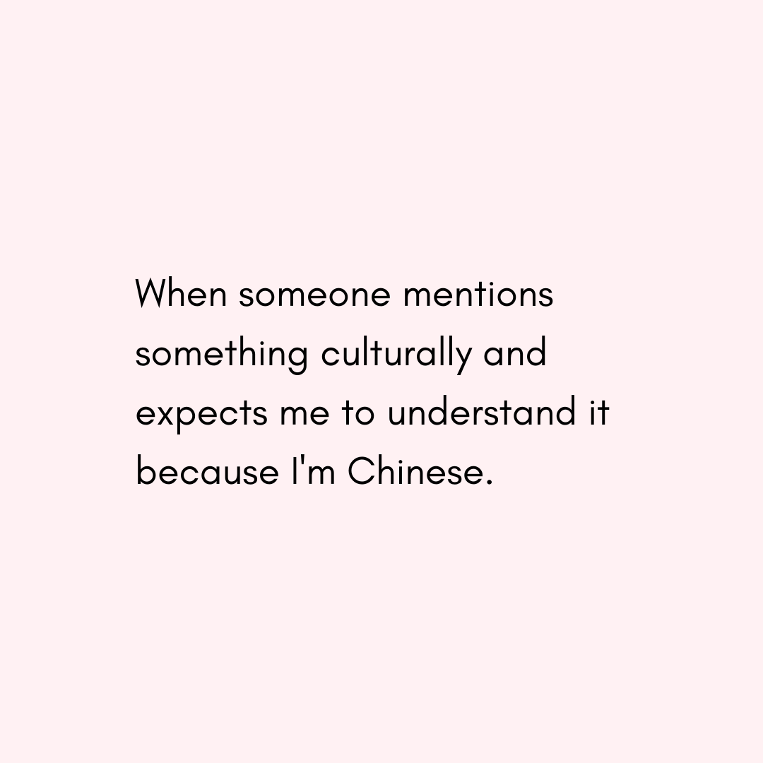 Slide two: When someone mentions something culturally and expects me to understand it because I'm Chinese.