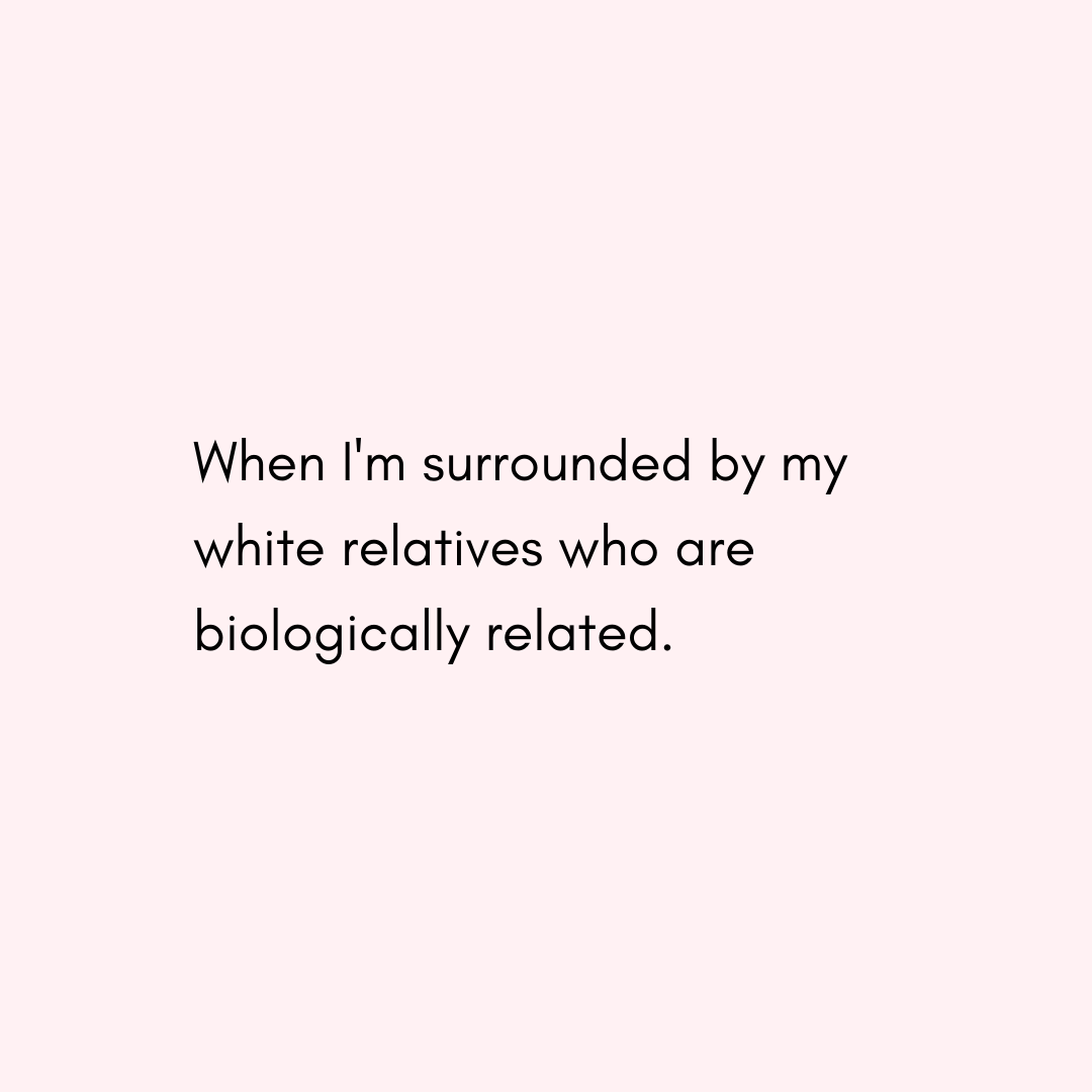 Slide three: When I'm surrounded by my white relatives who are biologically related.