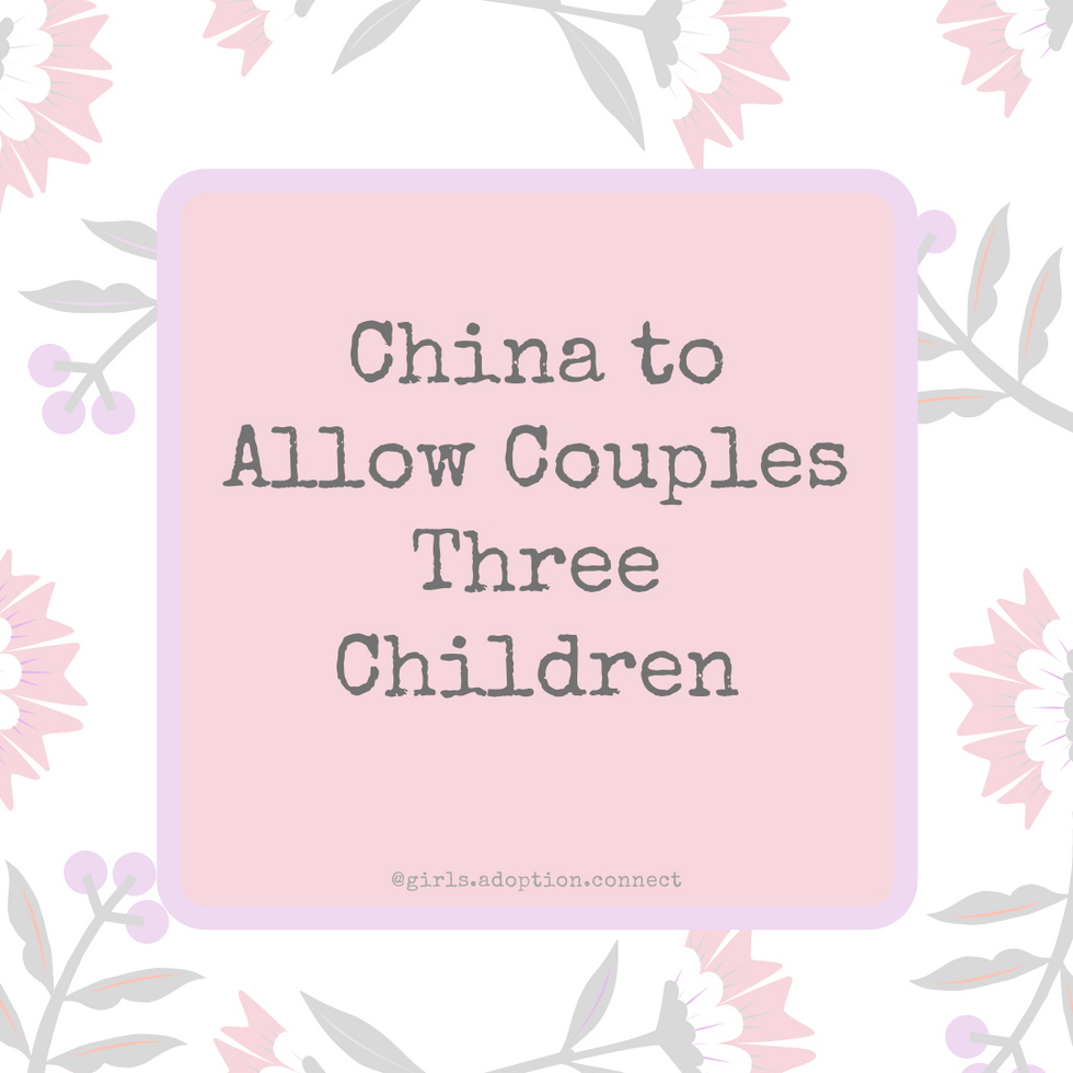 Title: "China to Allow Couples Three Children" written in large typewriter letters.